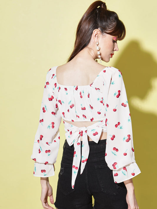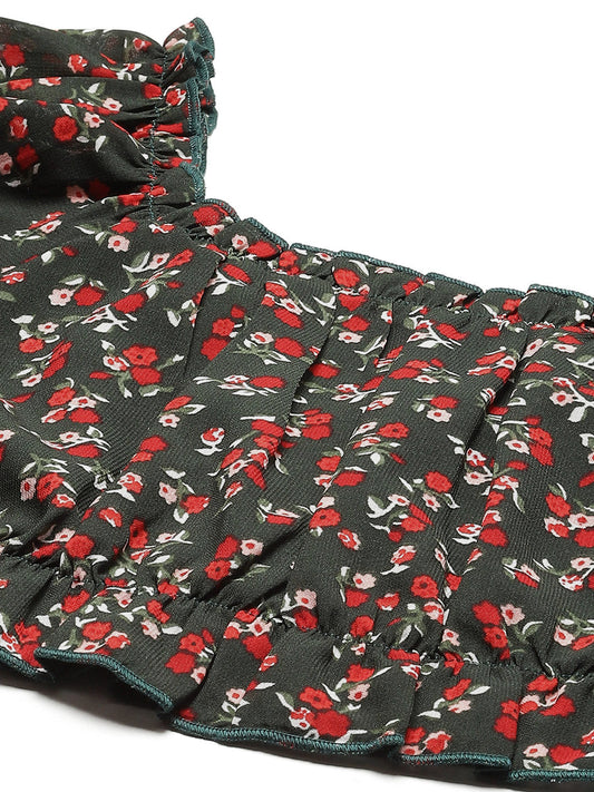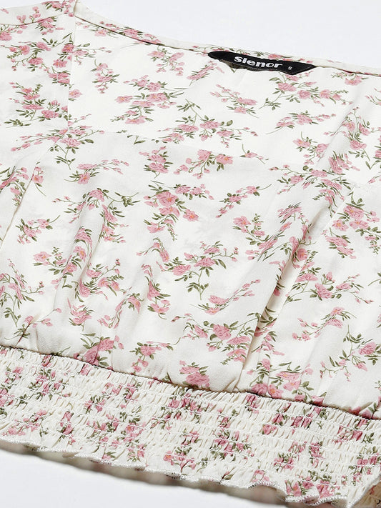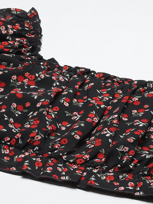 Floral Print Off-Shoulder Georgette Blouson Crop Top