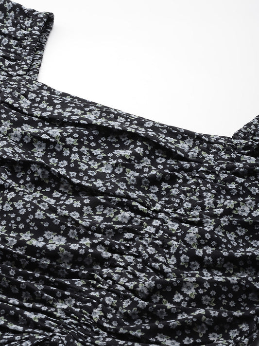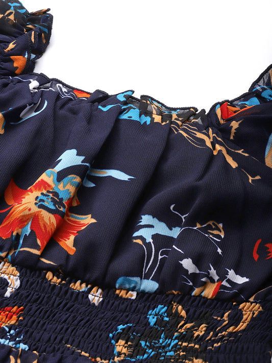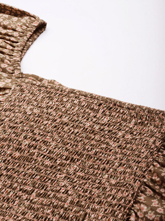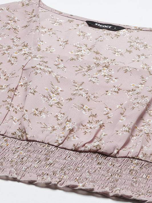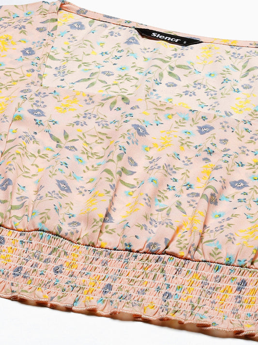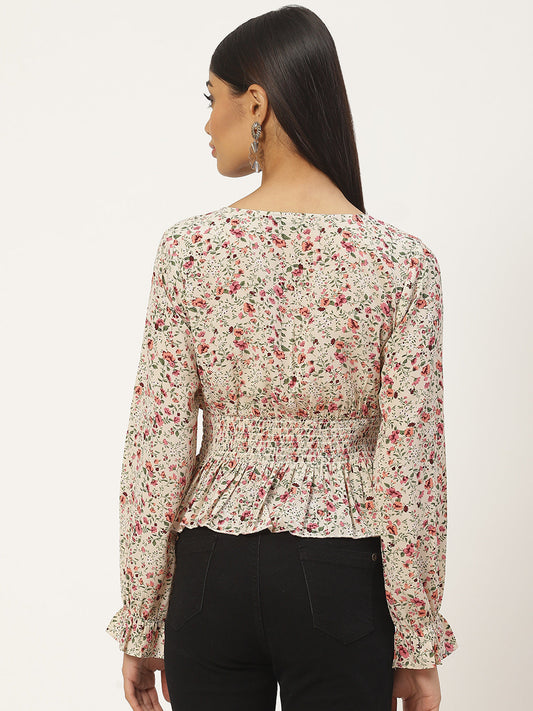 Floral Print Sweetheart Neck Smocked Georgette Peplum Top