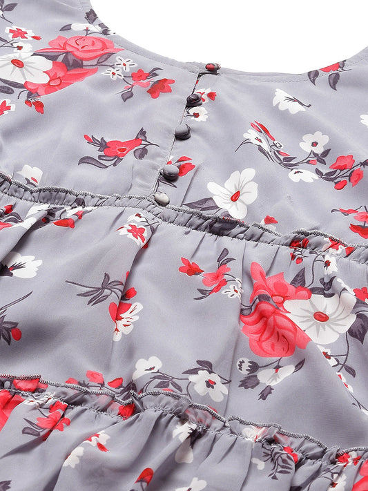 Floral Print Sweetheart Neck Georgette Peplum Top