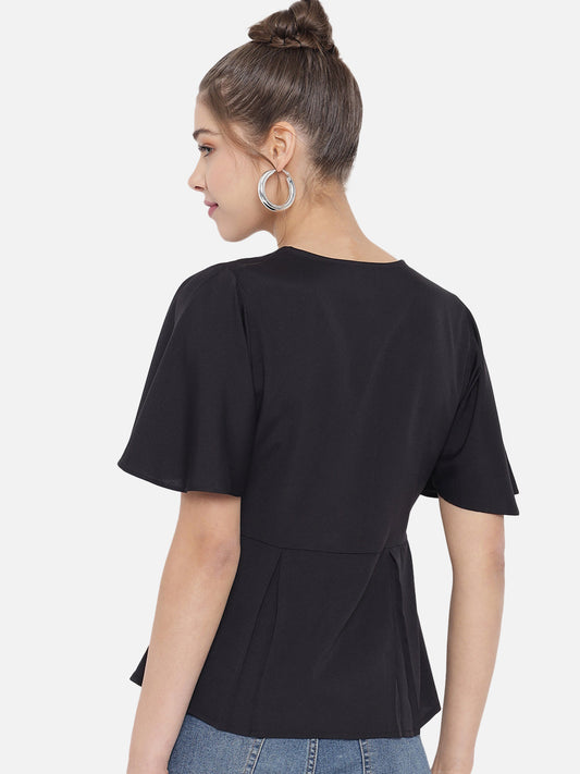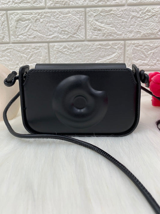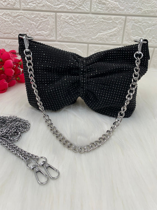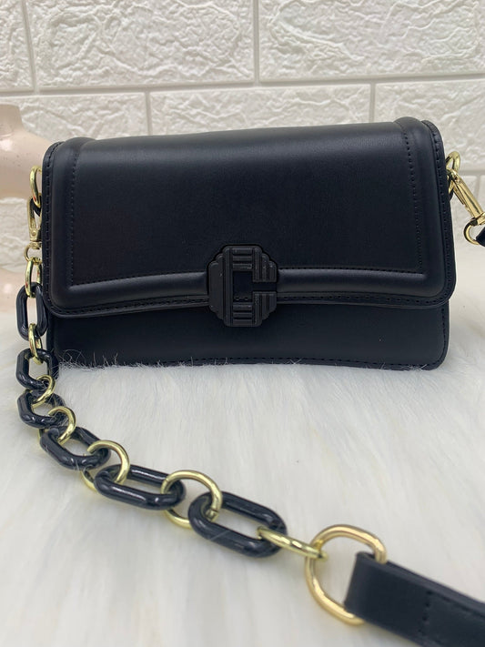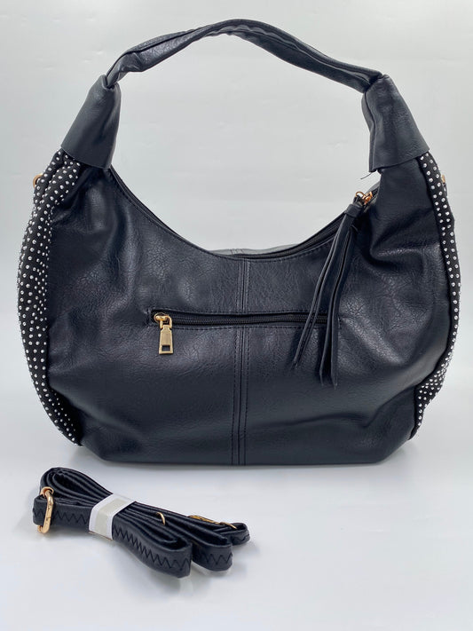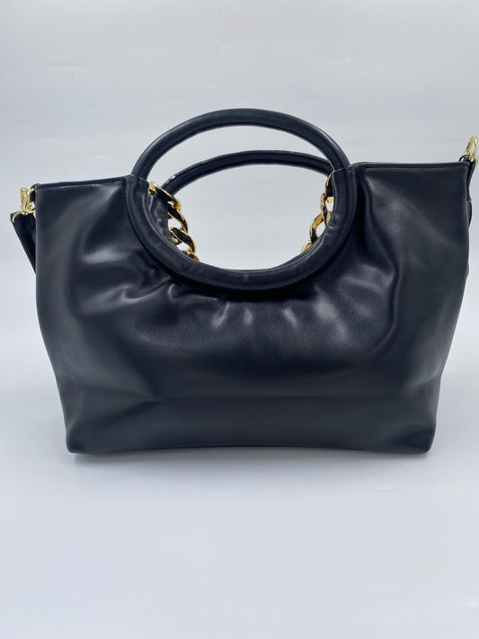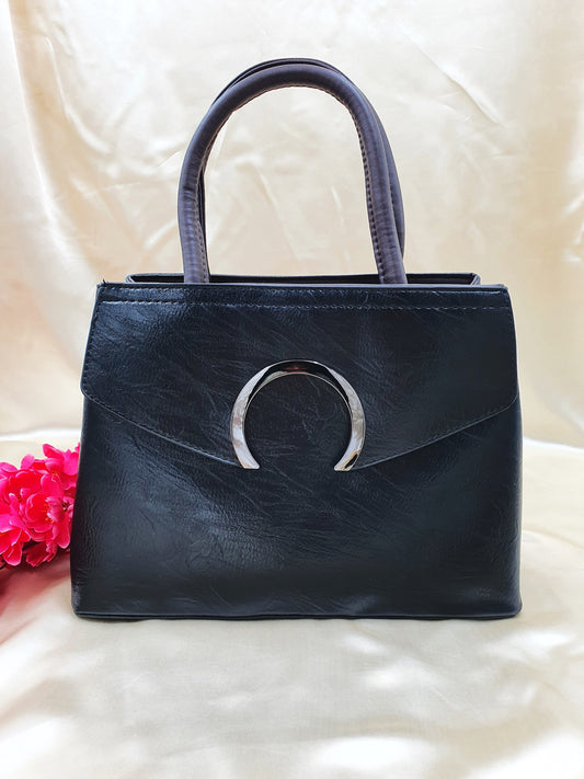 Black Solid Structured Handheld Bag with Detachable Sling Strap