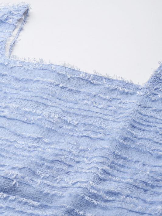 Blue Geometric Print Tie-Up Neck Georgette Top