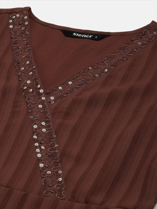 Brown Print Ruffles Monochrome Georgette Wrap Top