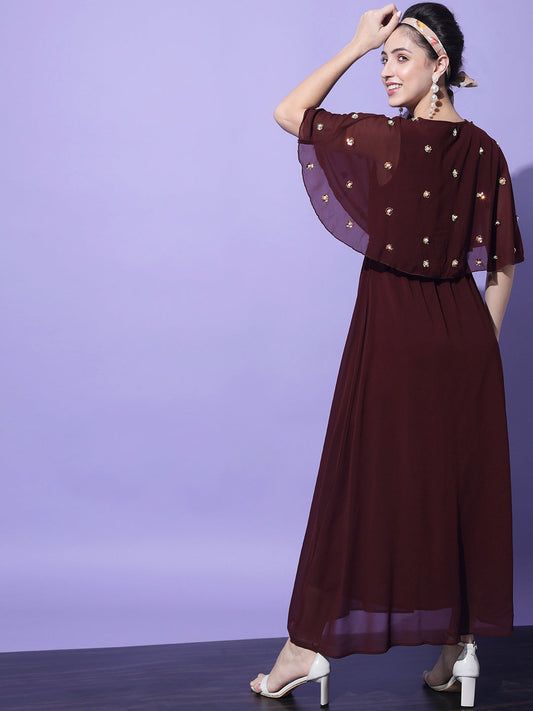 Brown Solid Sweetheart Neck Puff Sleeve Georgette Regular Top
