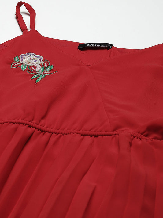 Women Red Georgette A-Line Midi Dress