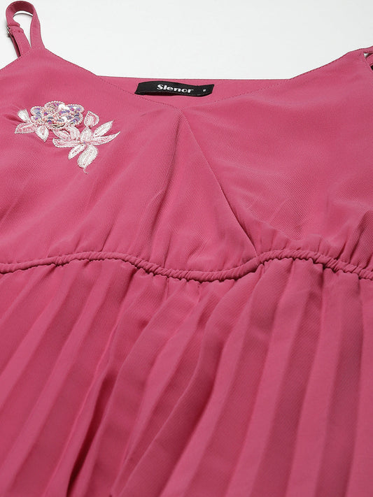 Women Pink Georgette A-Line Midi Dress