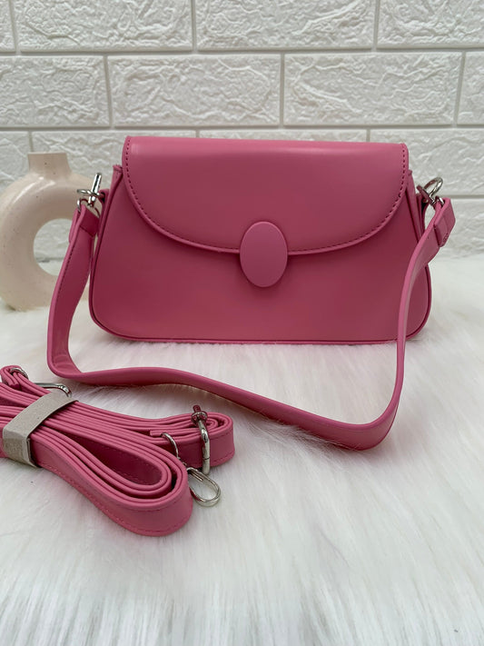 Women Pink Solid Metal Lock Sling Bag