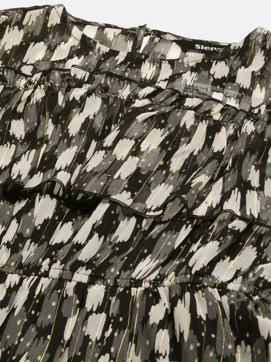 Grey & Black Chiffon A-Line Midi Dress