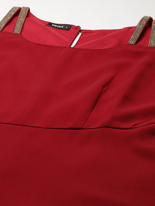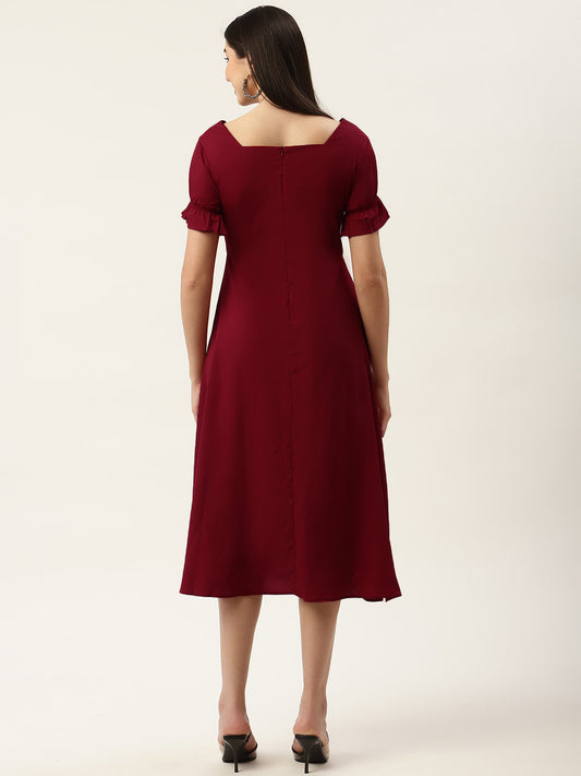 Maroon Crepe Midi Dress
