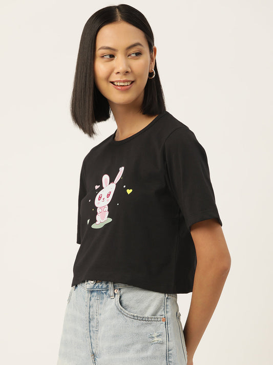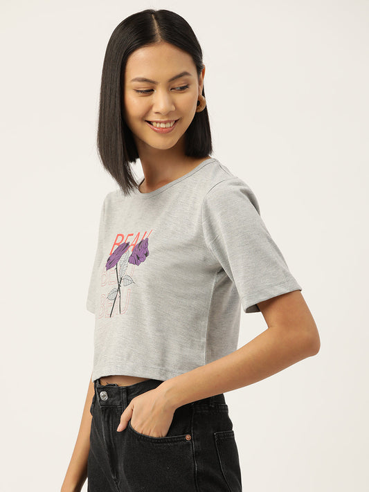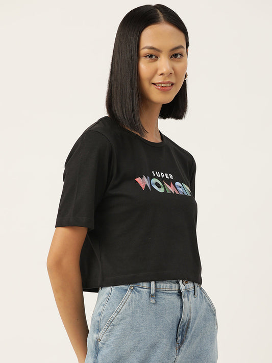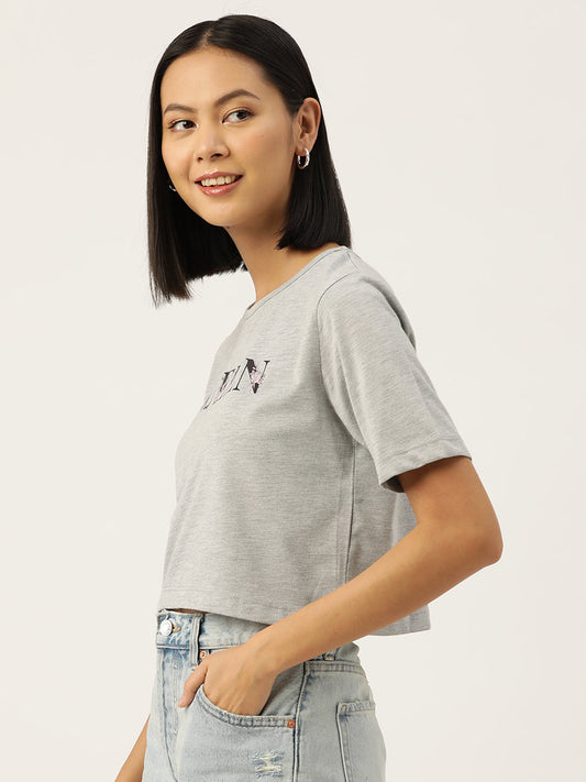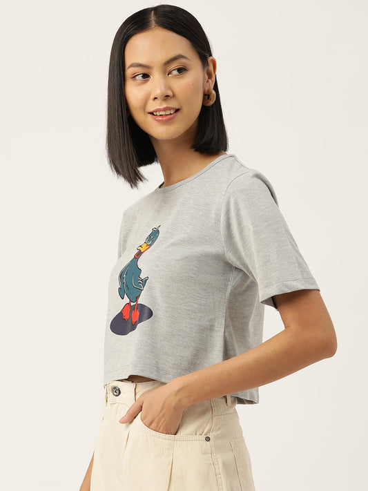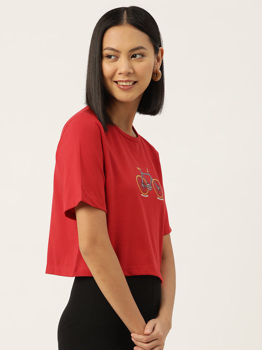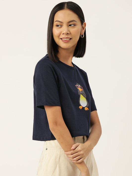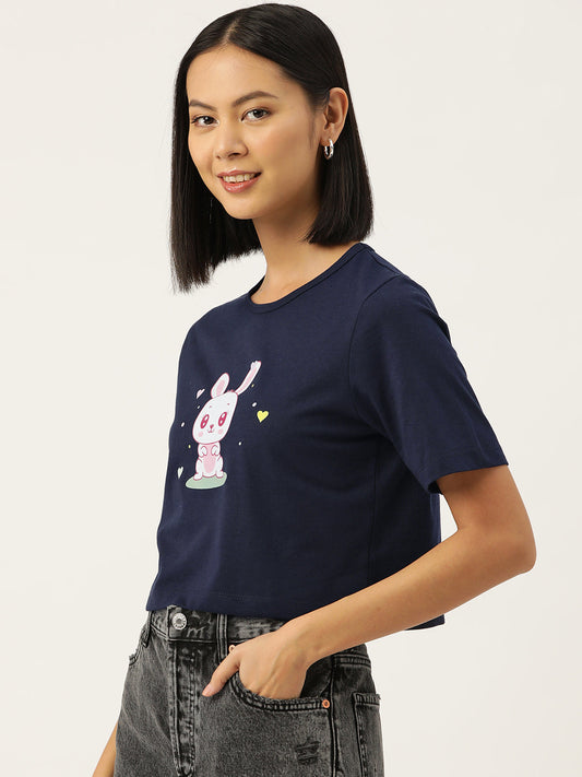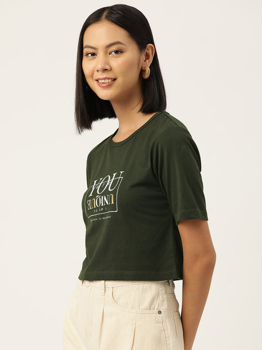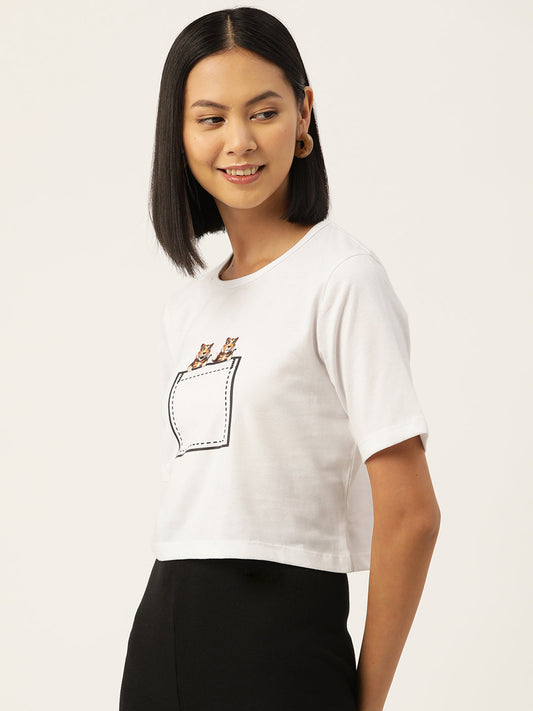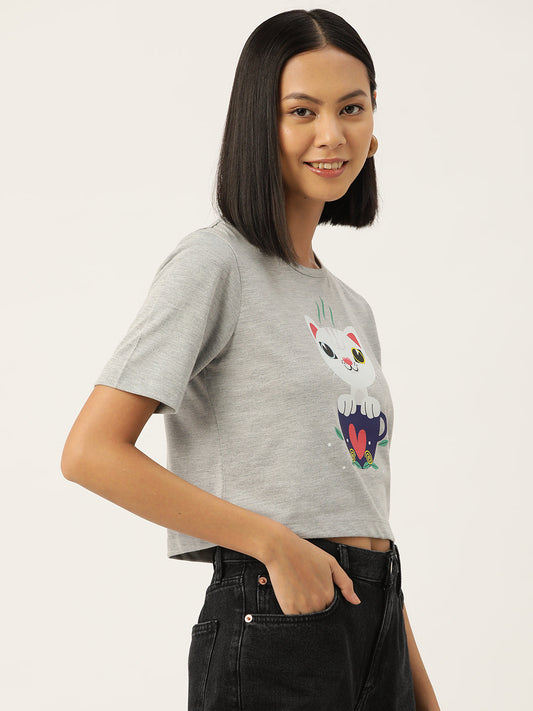 Women Graphic Printed Pure Cotton Crop T-shirt