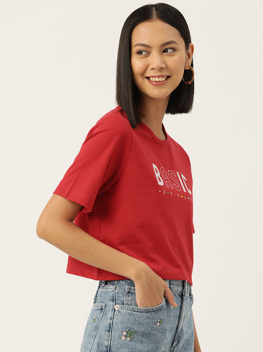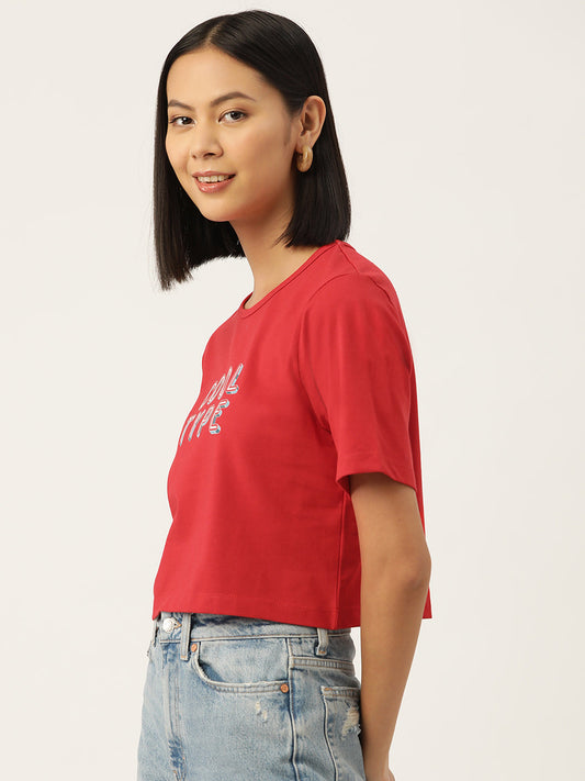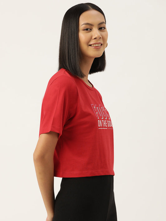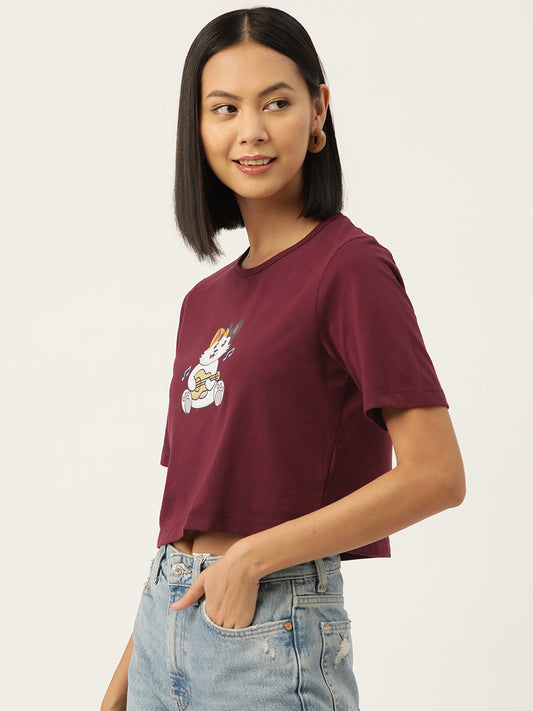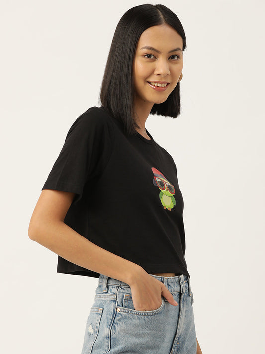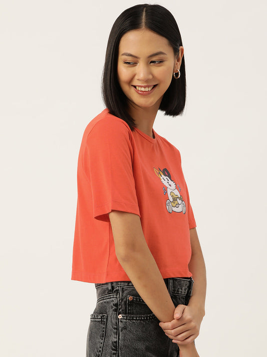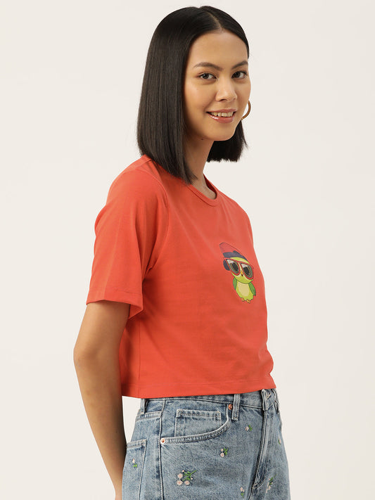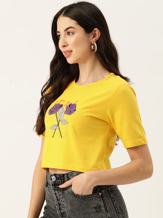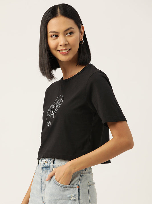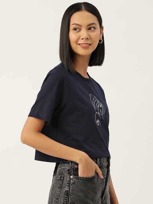 Women Graphic Printed Pure Cotton Crop T-shirt