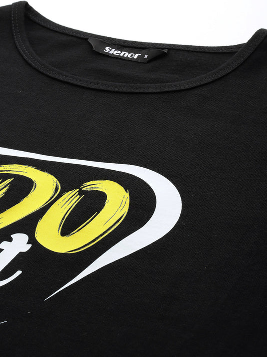 Women ' s Trendy Black & Yellow Graphic Printed Pure Cotton Crop T-shirt (Pack Of 2)