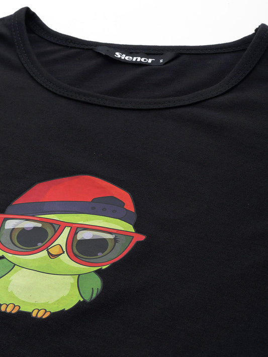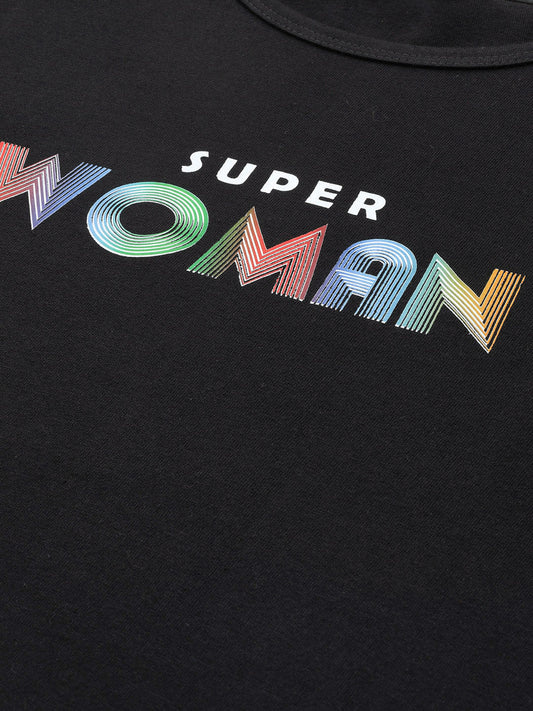 Women ' s Black & Maroon Graphic Printed Pure Cotton Crop T-shirt (Pack Of 2)