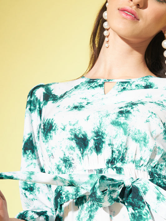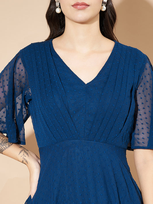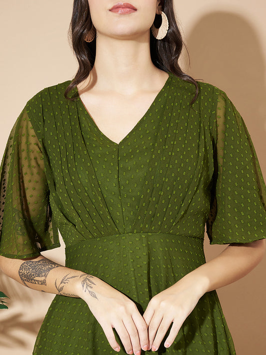 Women Flared Sleeve Tie-Ups Crepe A-Line Dress