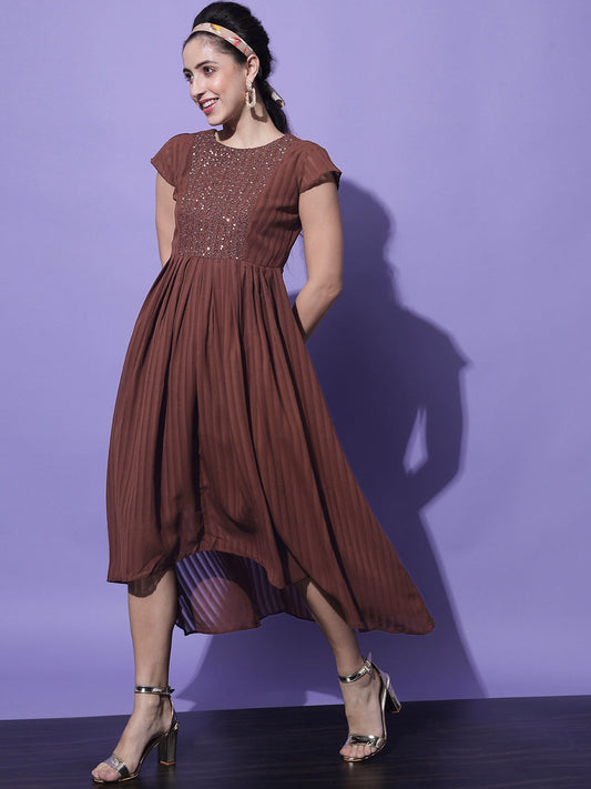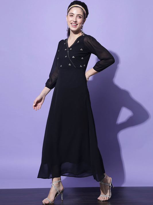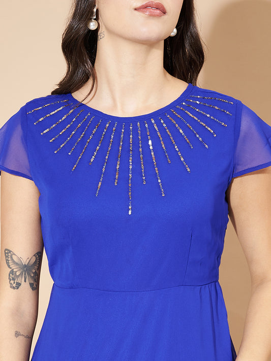 Embroidered Sequinned Georgette A-Line Midi Dress