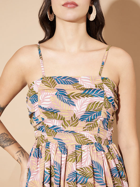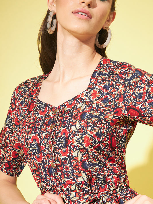 Multicoloured Floral Off-Shoulder & Teal Flared Sleeve Tie-Ups A-Line Midi Dress (Pack Of 2)