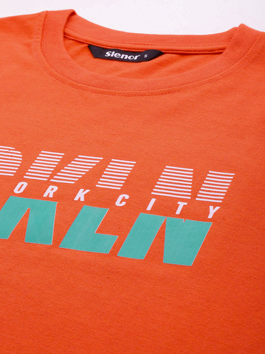 Women 's Casual Orange & Black Typography Printed Cotton Blend Drop Shoulder Long T-Shirt (Pack Of 2)