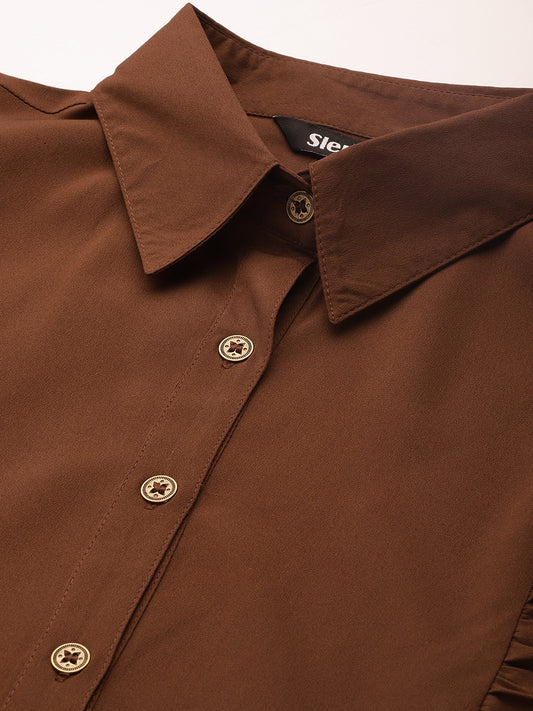Brown Ruffles Crepe Crop Top