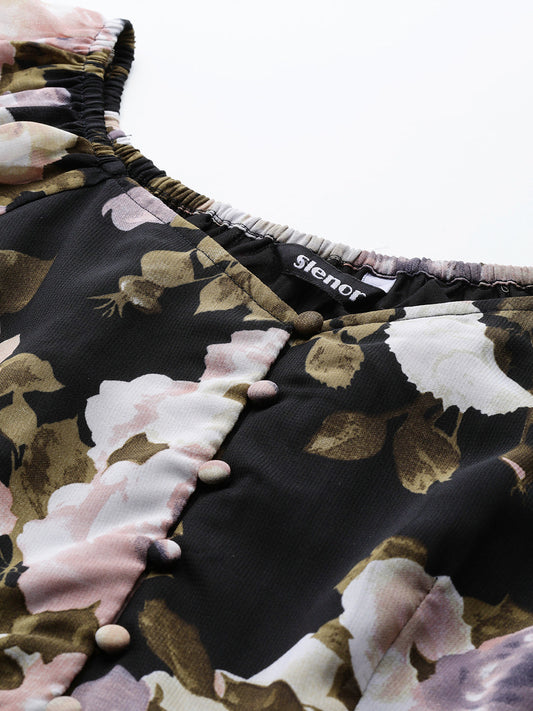 Slenor Floral Printed Sweetheart Neck Puff Sleeve Georgette Peplum Top