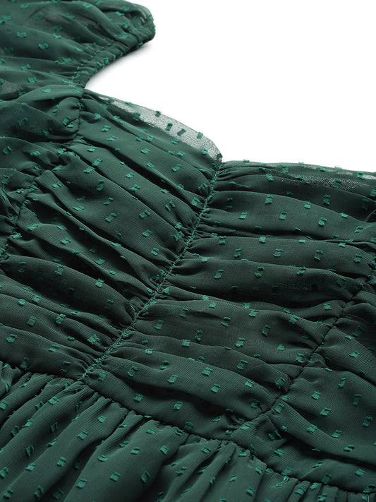Dark Green Sweetheart Neck Georgette Peplum Top