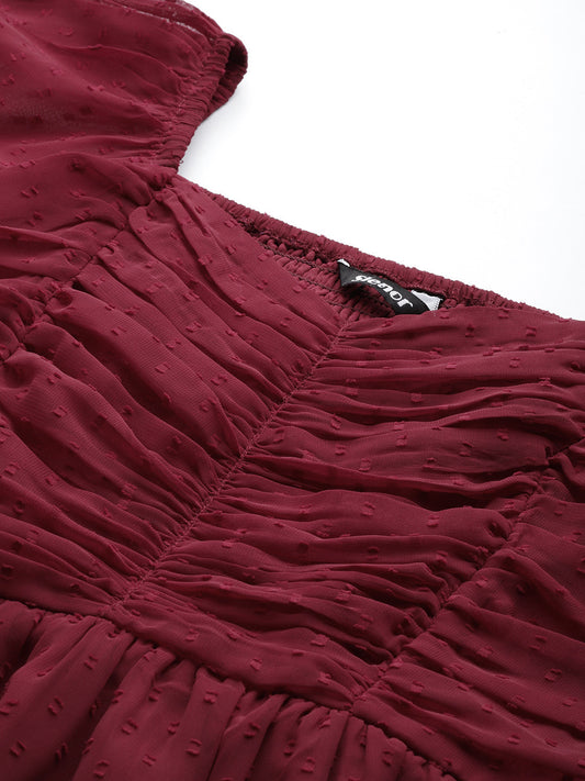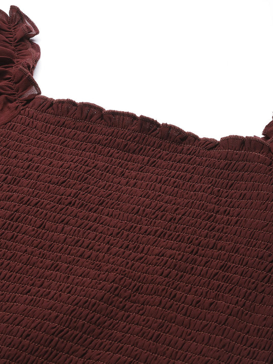 Maroon Smocked Georgette Crop Top