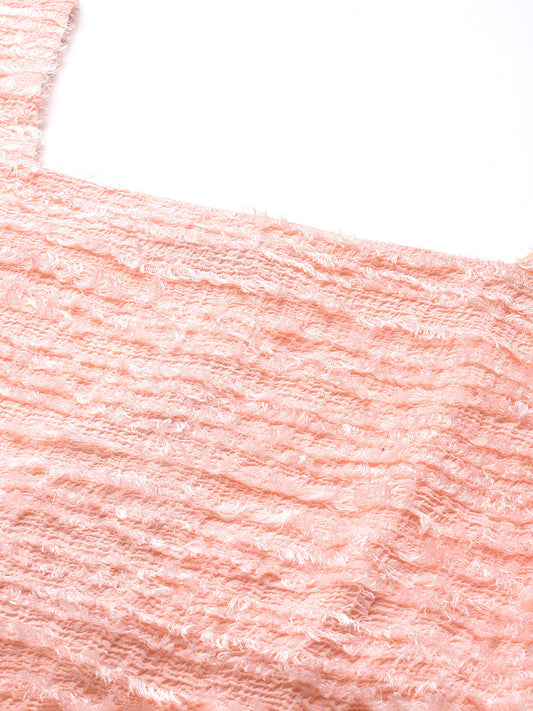 Peach Textured Georgette Crop Top