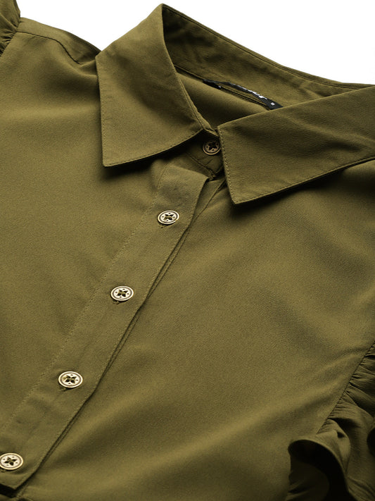 Olive Ruffles Crepe Crop Top