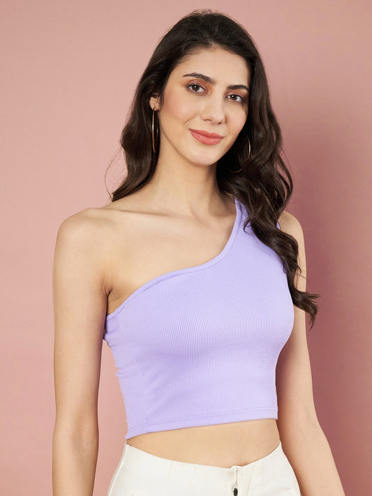 Party One Shoulder Sleeve Solid Women Purple Top