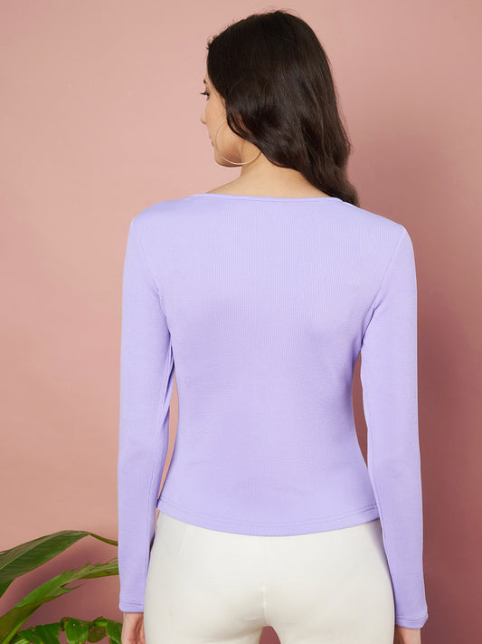 Casual Regular Sleeves Solid Women Lavender Top