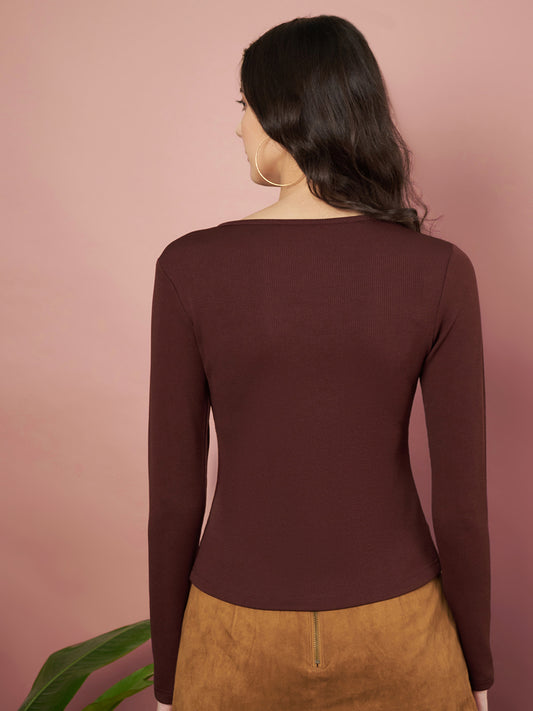 Casual Regular Sleeves Solid Women Brown Top