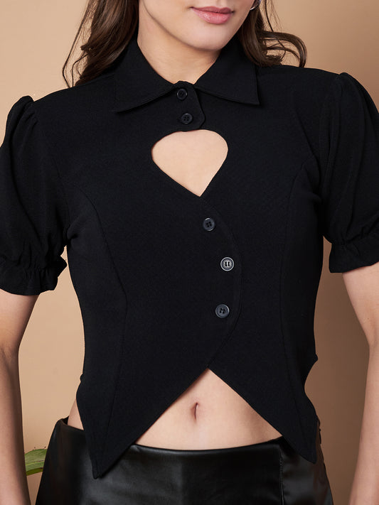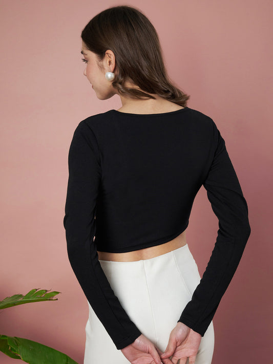 Party Regular Sleeves Solid Women Black Crop Top