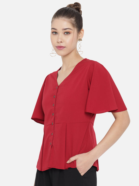 Maroon Crepe Peplum Top