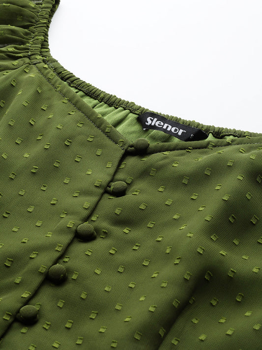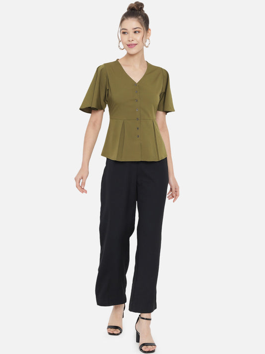 Olive Green Crepe Peplum Top
