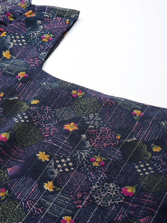 Women Floral Print Multicolor Tie-Up Neck Georgette Top