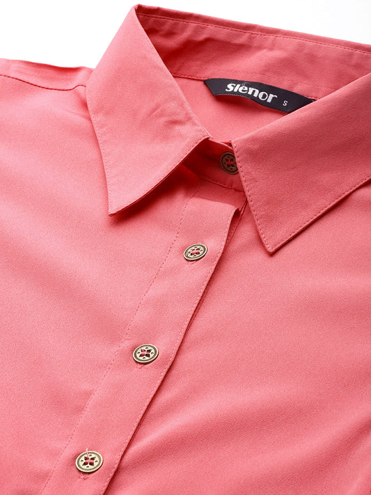Women Yellow Solid Mandarin Collar Shirt Style Top