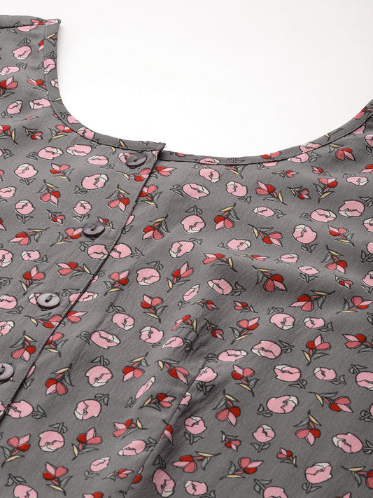 Grey Floral Print Crepe Top