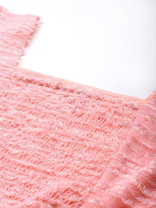 Pink Textured Georgette Crop Top