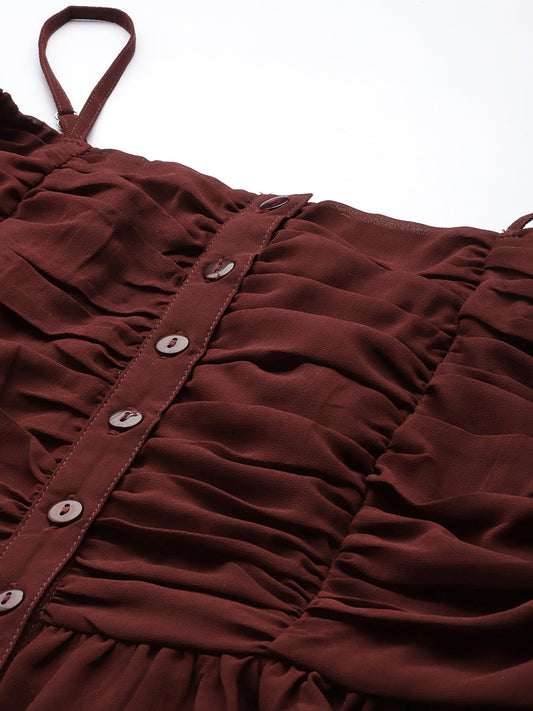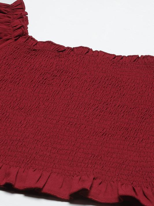 Maroon Ruched Georgette Bardot Top