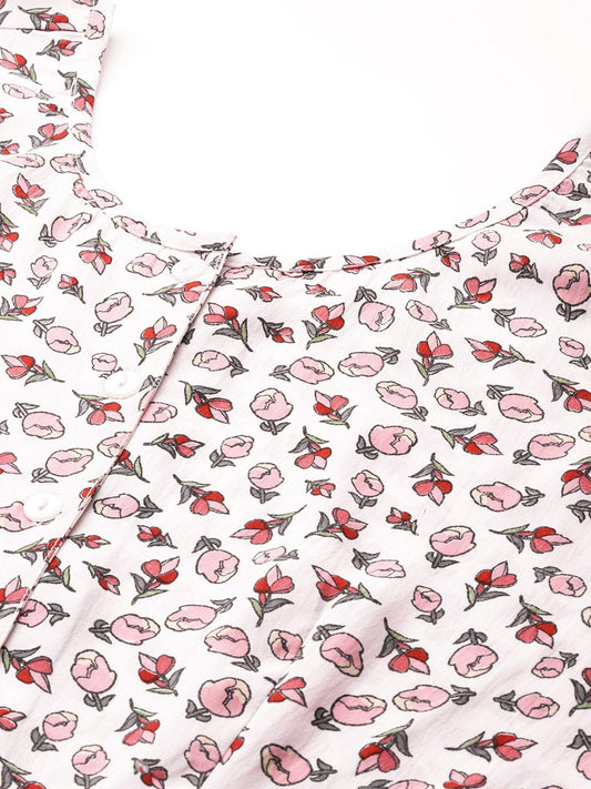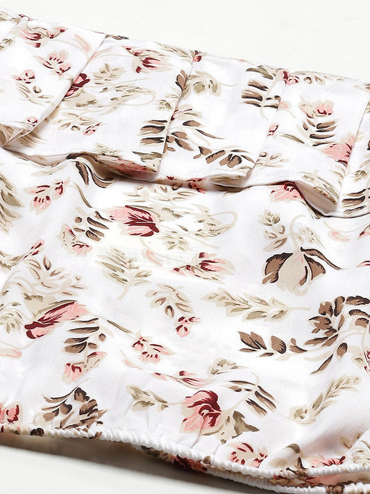 White Floral Print Crepe Top