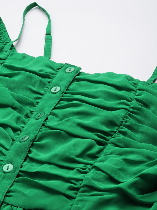 Green Ruched Georgette Bardot Top