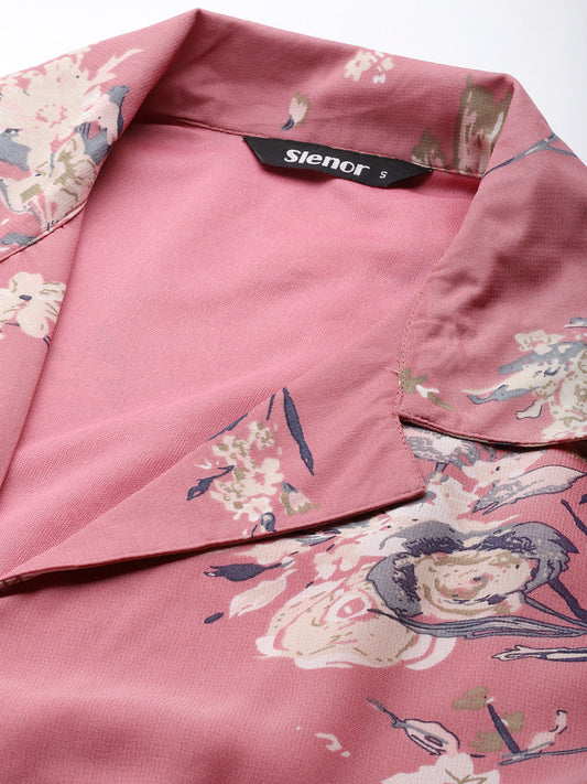 Pink Floral Print Georgette Wrap Crop Top