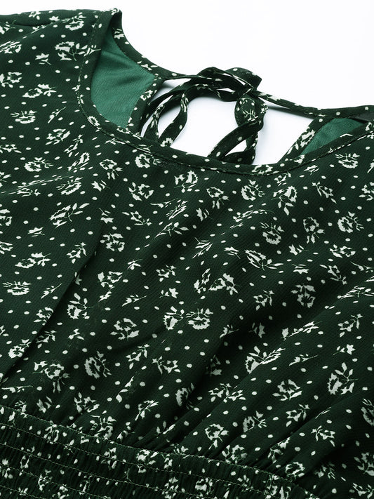 Floral Print Puff Sleeves Georgette Peplum Top