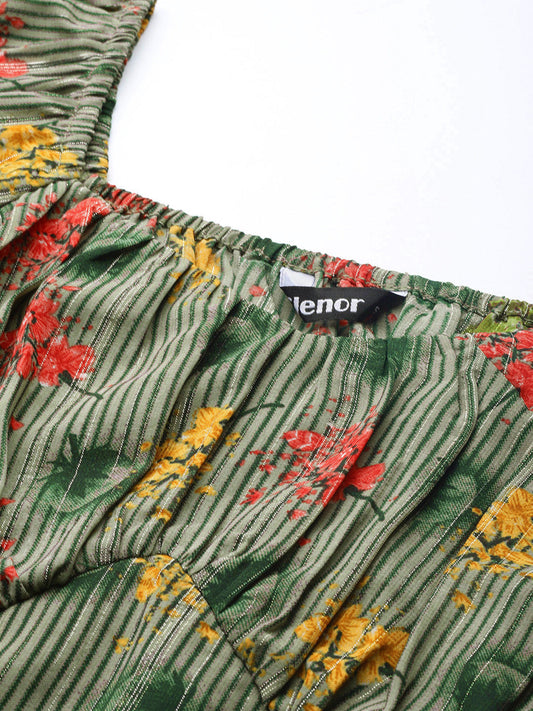 Floral Print Sweetheart Neck Georgette Crop Top