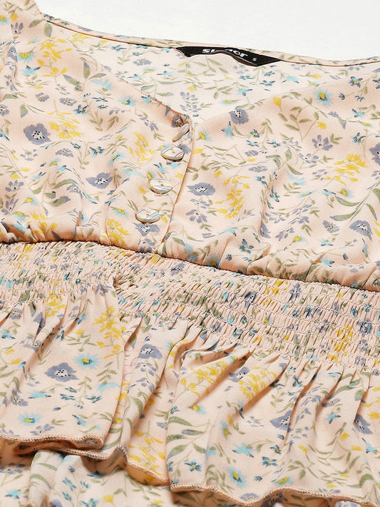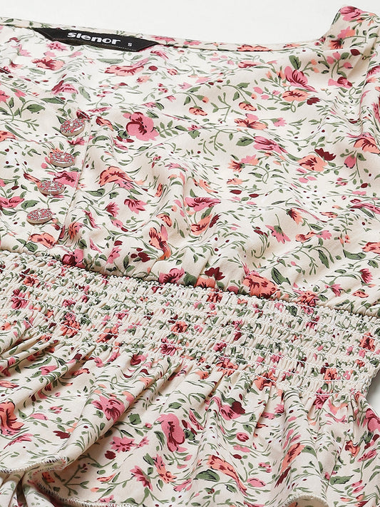 Floral Print Smocked Georgette Peplum Top