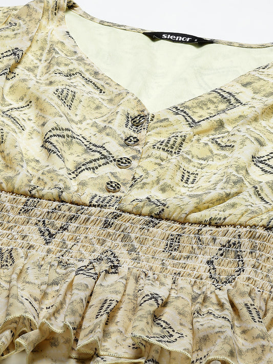 Printed Smocked Georgette Peplum Top