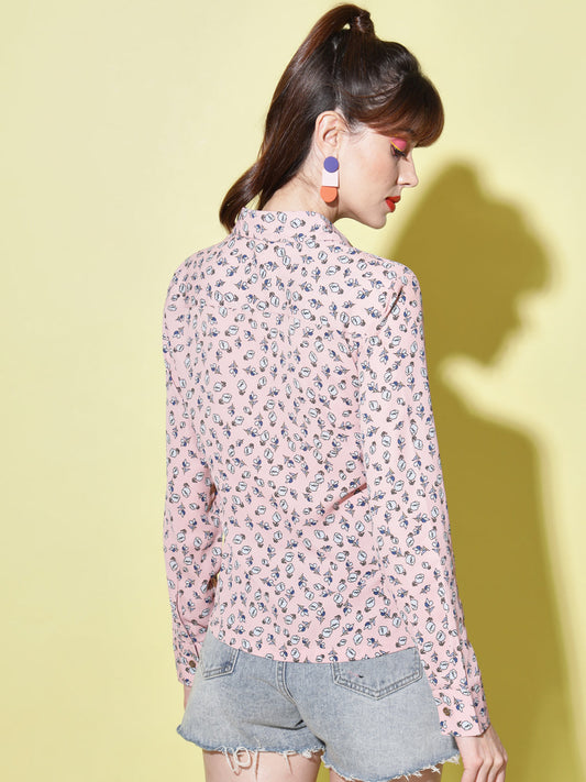 Women Pink Floral Printed Casual Shirt