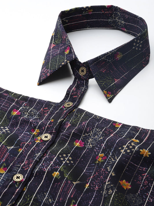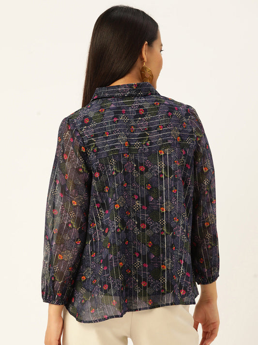 Women Navy Blue Floral Printed Casual Shirt