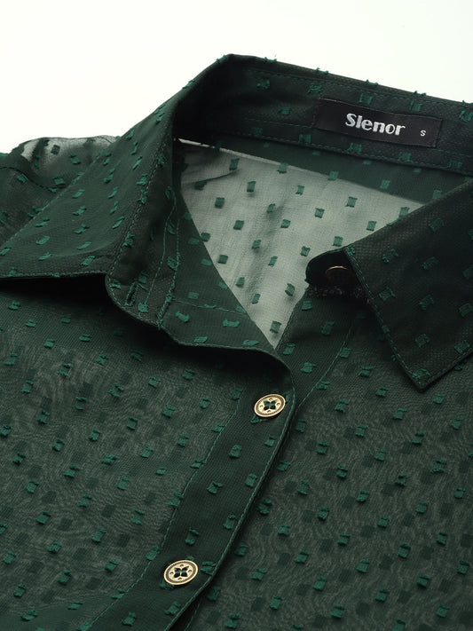 Dark Green Sheer Georgette Party Shirt