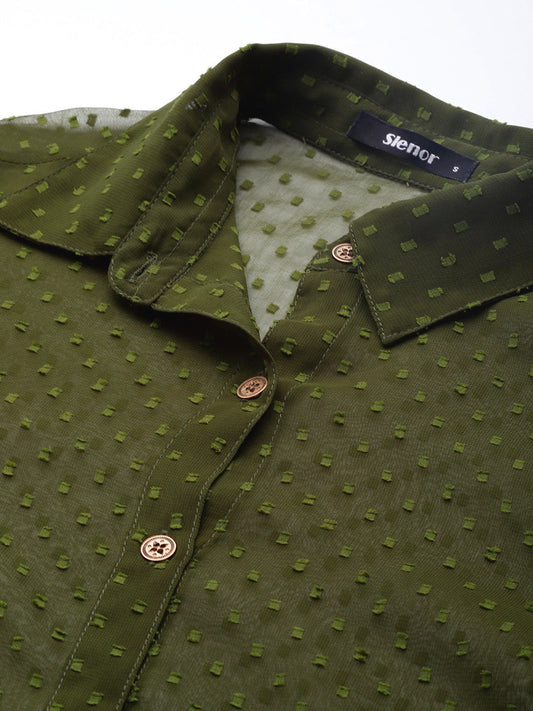 Olive Green Sheer Georgette Party Shirt