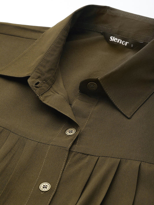 Women Solid Olive Green Casual Shirt
